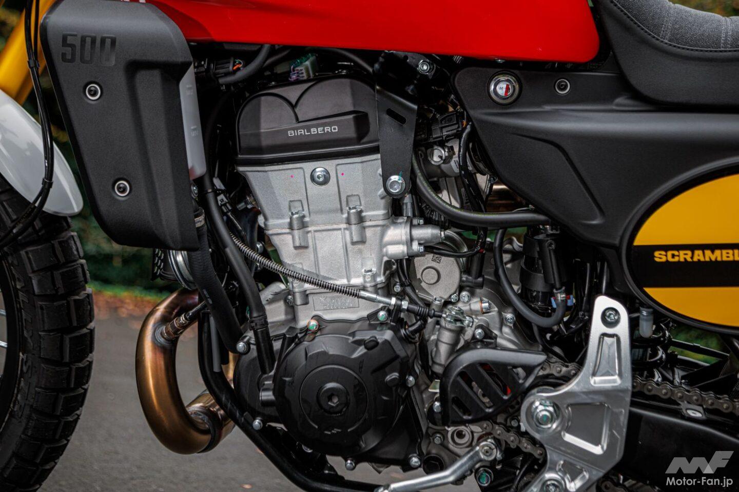 先代のエンジンも大変魅力的ではあったのだが、今回のモデルチェンジではユーロ5+に対応させるのを機に排気量を449㏄から460㏄へと拡大し、またヘッドをこれまでのSOHCからDOHCに新作するなど大掛かりな変更を加えた。これを機に製造もイタリアのミナレリ社へと移したのだ。