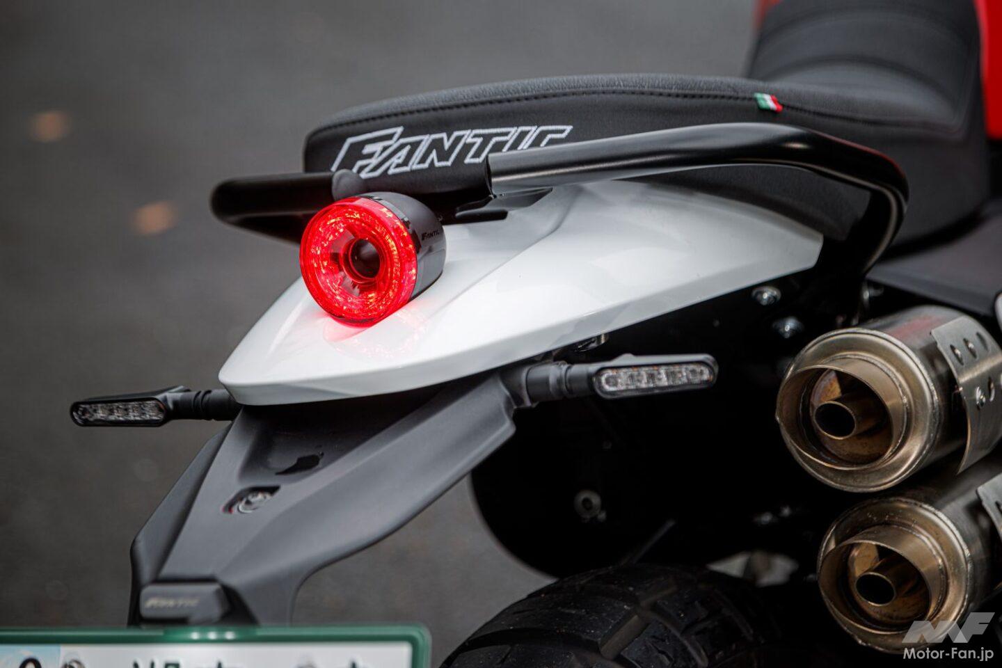 DOHC化したからと言って高回転型エンジンになったわけではなく、常用域の活発さは変わらずだ。ファンティック輸入元モータリストによると「低回転域が少し薄くなって、その代わり高回転域がプラスされた感じでしょうか」と説明してくれたが、実感としては低回転域が(規制対応により)薄くなってしまったという感覚はなく、むしろそれが開けやすさ/扱いやすさにつながっているとさえ思えた。