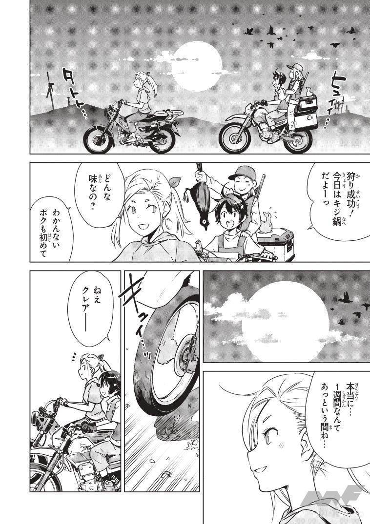 8巻では青森の三沢基地で出会った、この旅で初めての生存者「クレア」との物語が描かれるのだが、広い三沢基地でクレアはたったひとり。