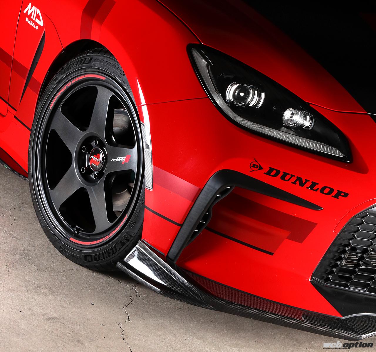 ディスクはフラットフェイスだが、これは大型化が進むブレーキシステムを考慮してのアプローチだ。今回、TR50(FR8.5J+45&225/40-18)をマッチングしたGR86は、純正の片押しキャリパー仕様だったが、ブレンボなど大型の対向キャリパー装着車も難なくマッチング可能なクリアランスを確保している。