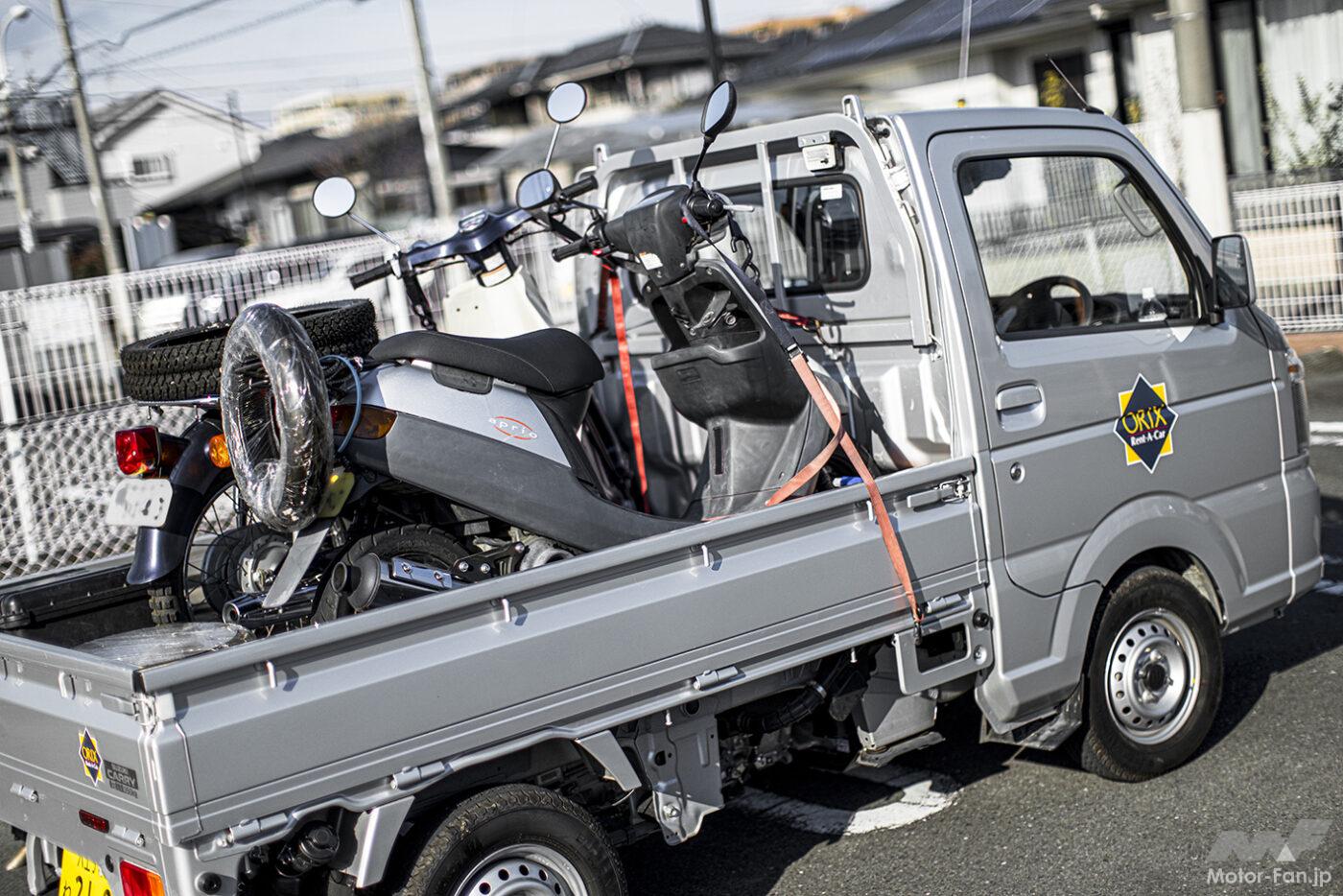 トラックで運ばれるアプリオとカブ。2台ともパンク中。