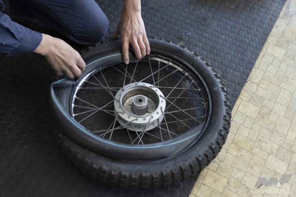 チューブを新品に交換して、タイヤを組み直したらスーパーカブのパンク修理は完了です。