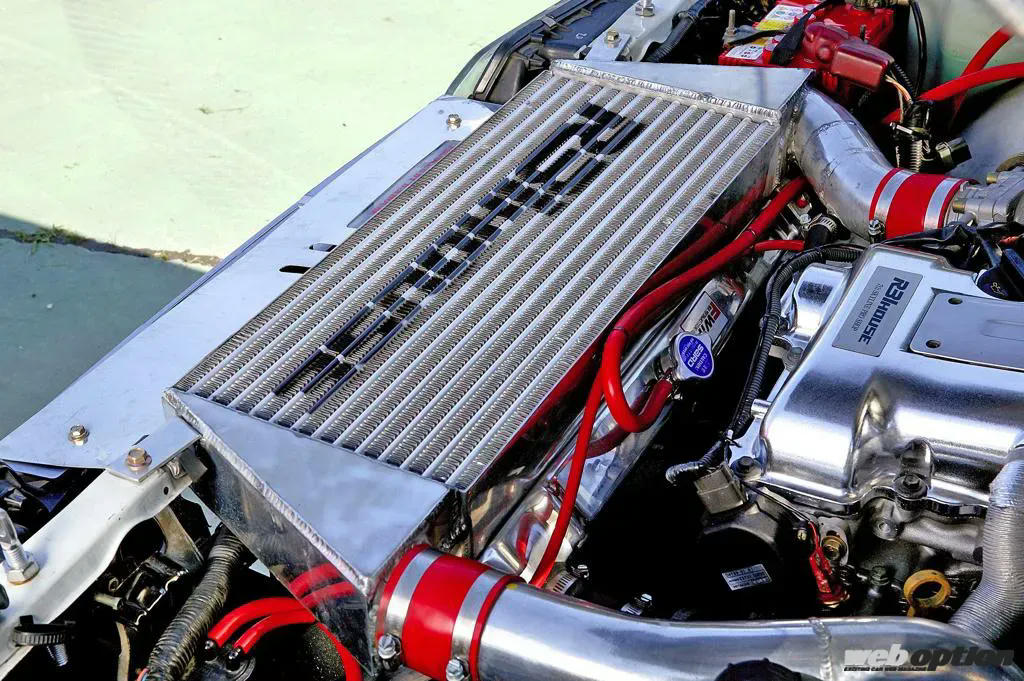 さらにインタークーラーとラジエターをワンオフでVマウント化。フロントオーバーハングの重量を軽減させて、徹底的に回頭性能の向上を狙ったのだ。