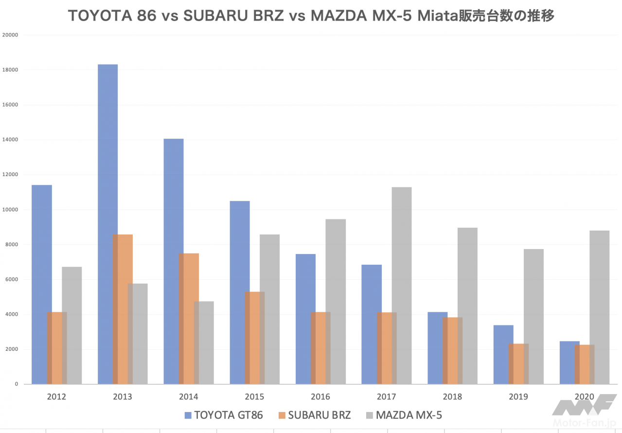 86/BRZ、そしてマツダ・ロードスターの販売台数の推移は?