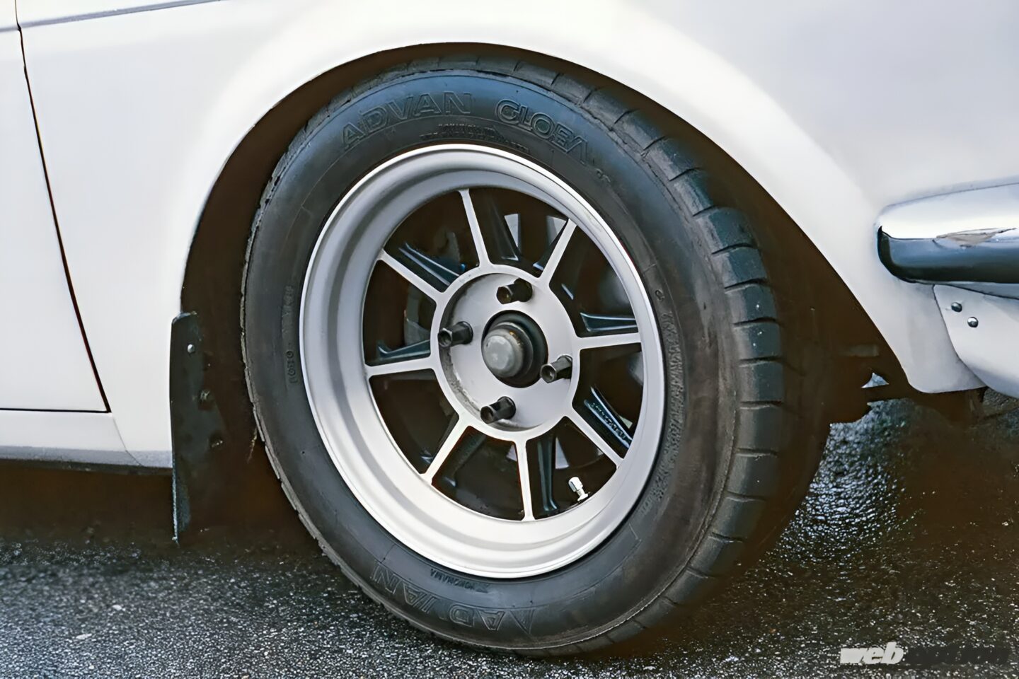 ホイールはハヤシストリートでサイズはフロント6.0J、リヤ7.5J。タイヤは前後とも185/60-14だ。この年代のクルマとしては、これでも十分太い部類に入る。