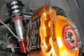 ブレーキは前後にR35GT-R純正キャリパー&トップシークレット製2ピースローターをインストール。もちろんキット設定などないため、これらは全てスモーキーがワンオフ製作したスペシャルだ。サスにはトムスのアドヴォクスが奢られている。