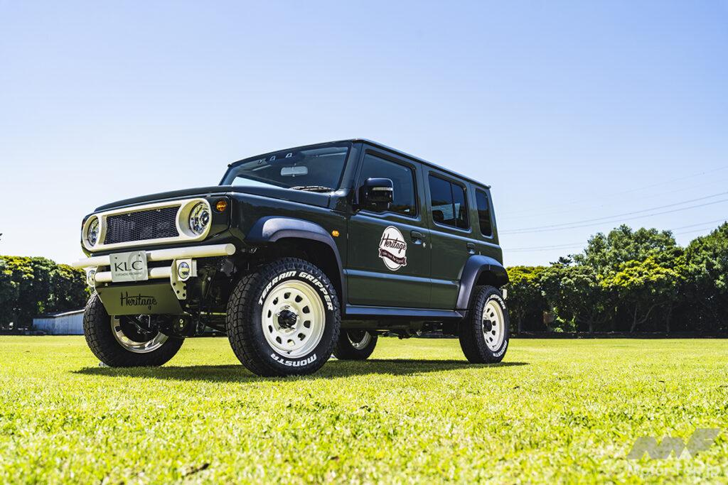機能・デザイン共に今までのジムニーカスタムとは一線を画すスタイリッシュなアイテムを揃え、オシャレにカッコ良くイジりたいジムニーユーザーから支持されているヘリテージ。特にバンパーとフェイスグリルはバリエーションが豊富で、ボディカラーやカスタマイズの方向性に合わせてチョイスできるのが最大の強み。もちろん注目度が高い5ドアのノマドも各パーツの適合確認を終え、ついに発売をスタート。今回は何と一気に3台のデモカーをお披露目し、ボディカラーに合わせた上手なコーディネイトを提案する。