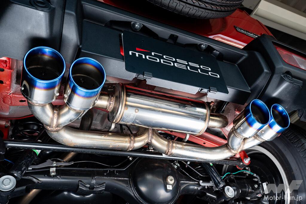 カスタムの第一歩にふさわしいメニューと言えば何か。足まわり? 確かにそれもありだろう。特に車高が変われば、クルマの見た目も大きく変わる。タイヤ&ホイール? これもカスタムのセオリーと言って良い。だが、ここでオススメしたいのは、ロッソ モデロのマフラーだ。それはなぜか? マフラーを交換すれば見た目だけでなく、走行時のサウンドも変わる。