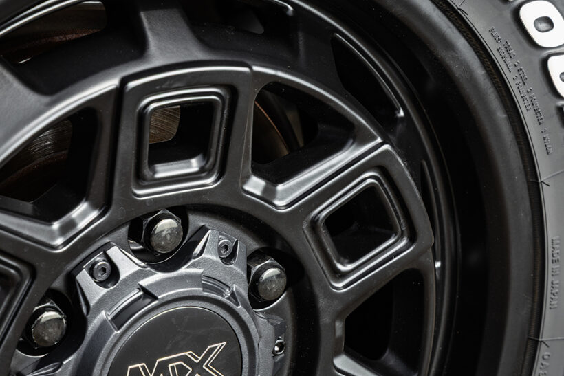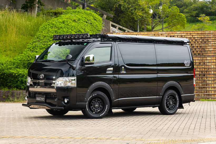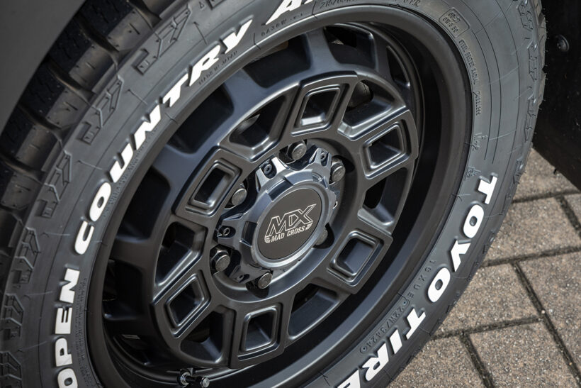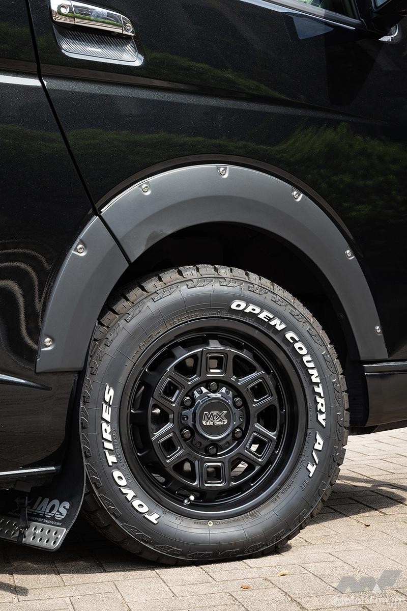 パーツ(カスタム) 【16インチ:5万2800円】その名は砲台ディスク! 【マッドクロス・アイヴァー】は、オフな『ハイエース』にお似合い!!【写真・8枚目】 WHEEL SIZE 16×6.5J+38 TIRE SIZE 215/65[TOYO] バンパーガードやルーフキャリア、トーヨータイヤのオープンカントリーA/Tタイヤなど、アクティブなアウトドア仕様にモディファイされたデモカーを見ればオフスタイルとの親和性の高さは文句なし。砲台ディスクの立体デザインが、存在感を強く発揮している。 この画像の記事を読む