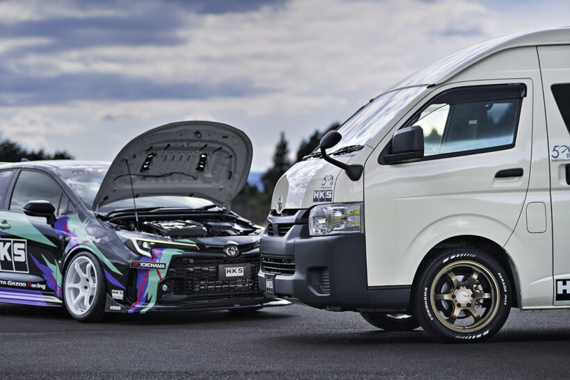 アドバンのサービスカーにはアドバンのホイールを。そんなチューナー陣からの強い要望で生まれたこのモデルは、6ホールとの相性に優れた6スポークのRG‐D2がベース。リムはステップ形状でディープだからハイエースとの親和性もバツグンで、規格荷重に耐えうるためにスポークを太めにリニューアルするなど、サイズも含めてハイエースのために再構築される。