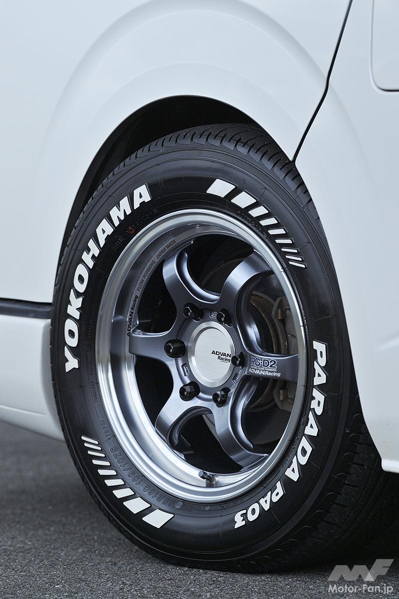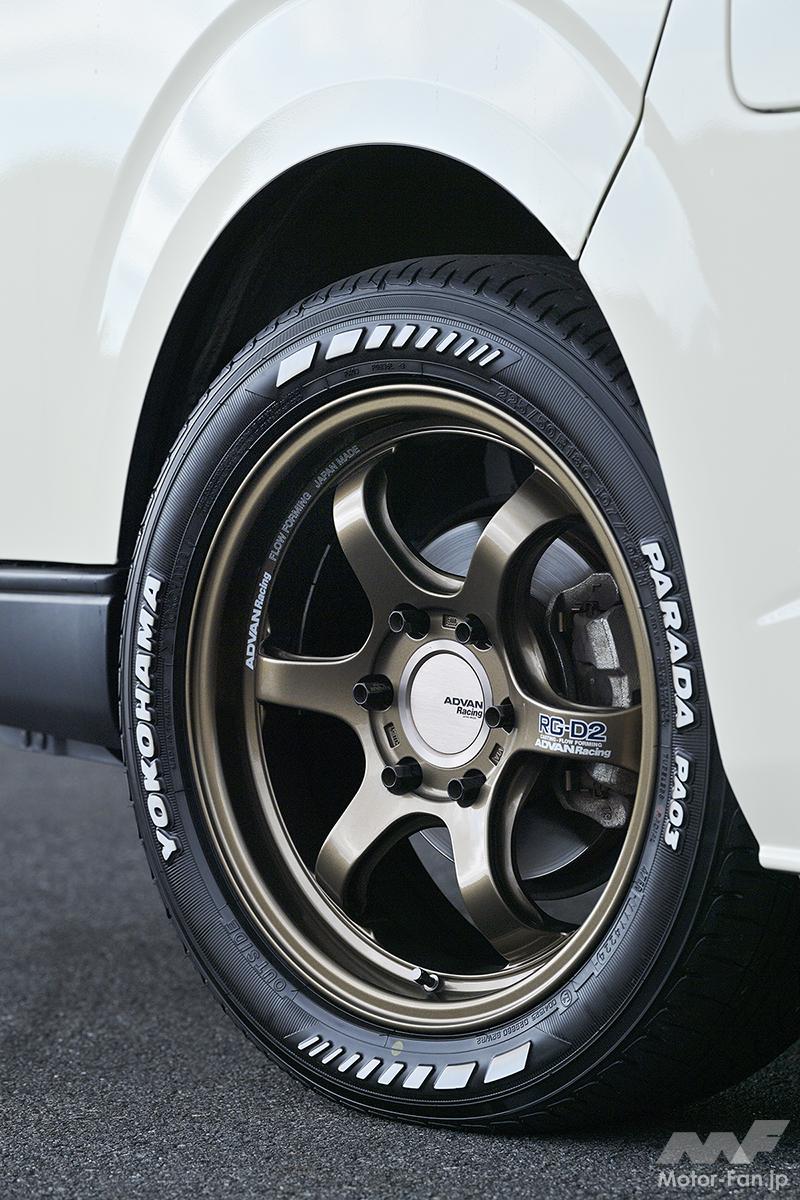 パーツ(カスタム) 【16インチ:5万50円】『ハイエース』で味わう走りのDNA!【ADVAN Racing】が贈る、王道スポーツホイールの魅力とは?【写真・3枚目】 WHEEL SIZE 18×7.0J+38 TIRE SIZE 215/60[YOKOHAMA] WHEEL COLOR UMBER BRONZE METALLIC サービスカー用とは言えそのスペックは本家同様にスパルタン。軽さや強さといった性能面での妥協はいっさいなく、RG-D2に備わるすべてが注ぎ込まれている。サイズは16インチ~18インチで、実用面ルックス面ともにカバー。アガるカラーは全6色、映え度も充分。 UMBER BRONZE METALLIC [18inch] MACHINING & GUN METALLIC[16inch] MACHINING & RACING GUN METALLIC(16inch/17inch/18inch[7.0]) MACHINING & BLACK GUN METALLIC(16inch/17inch/18inch) MACHINING & CHAMPAGNE GOLD(16inch/17inch/18inch) MACHINING & RACING UMBER BRONZE(17inch) MACHINING & RACING CANDY RED(17inch) UMBER BRONZE METALLIC(18inch) この画像の記事を読む