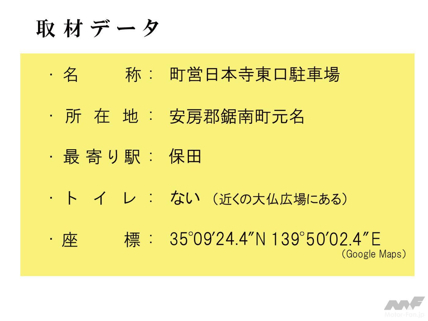 今回、下に示した座標点や住所データは「鋸山日本寺」の東側に位置する「町営日本寺東口駐車場」です。バイクはここに駐輪して徒歩で眺望を楽しむのがおすすめ。なぜなら4輪は通行できる有料道路(鋸山登山自動車道)は、2輪車の通行ができないからです。