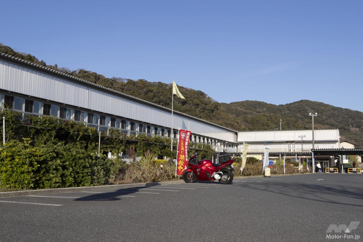 このほか下山すれば、鋸南保田インターチェンジを出て左折すると直ぐ右手にある「道の駅保田小学校」が近いので、休憩スポットにも困らない。同所は宿泊や温泉入浴施設も利用可能。夏は海水浴場として賑わう保田海岸も波打ち際すぐ近くに駐輪できます。ツーリングで目的地のひとつに設定するのもお勧め。時間に余裕があるならどこかに一泊を挟んで春の訪れが早い南房の館山周辺コースを回るとさらに爽快な旅が楽しめるでしょう。