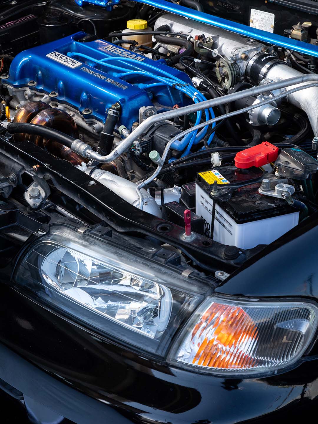もちろん過給機をポン付するのではなく、エンジン本体もフルに手が加えられている。腰下はプリメーラ用のSR20VEから流用し、ピストンやコンロッドはエクストレイルのSR20DET用で圧縮を下げる。なお、ヘッドはSR16VE用をそのまま使用している。