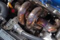 ターボ化に合わせてエキマニからマフラーまでを一新。特にマフラーは80φでワンオフ、キャタライザーも装備しつつももスムーズに排気できるレイアウト目指した。