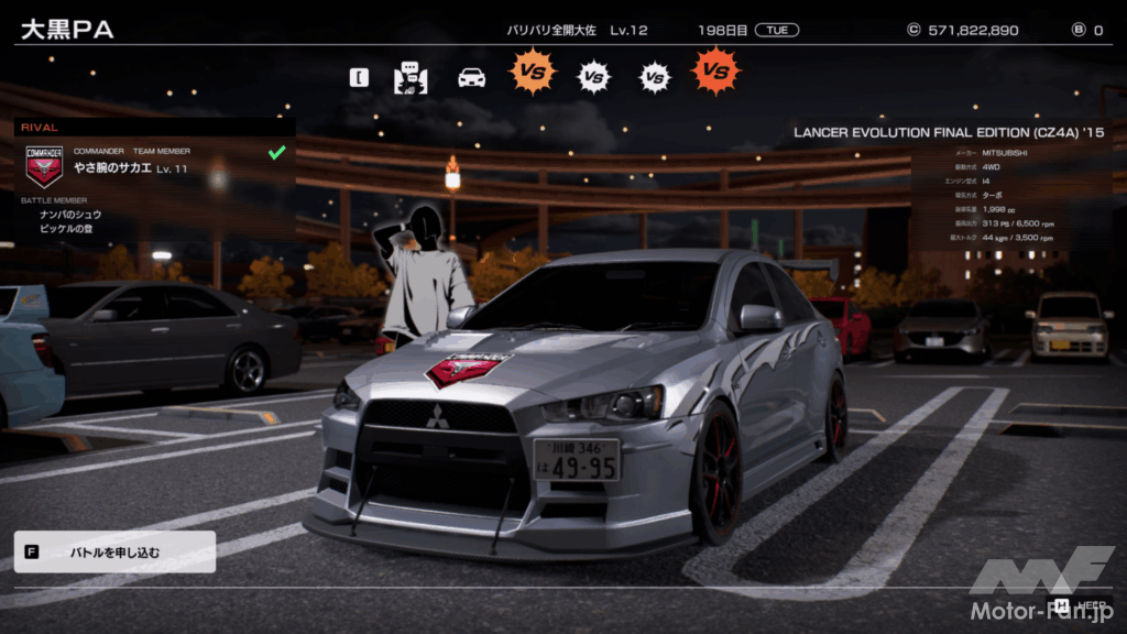 会場でデモ版をプレイしてみたが、首都高を走行しながら、対戦相手を探し、パッシングでバトルが開始するという仕組み。コースを周回する個性豊かな457人のライバルを撃破し、最速の称号を目指す。