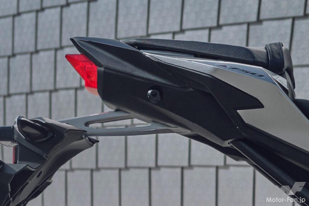 パワートレインは、754cc水冷直列2気筒SOHCエンジン(ユニカム採用)を搭載した。最高出力67kW(91ps)・最大トルク75Nm(7.6kgm)を発生。低中速域の扱いやすさと高回転域でのスポーツ性を両立した。また、クラッチ操作を軽減するアシスト&スリッパークラッチを採用。トランスミッションは6速MTとなる。