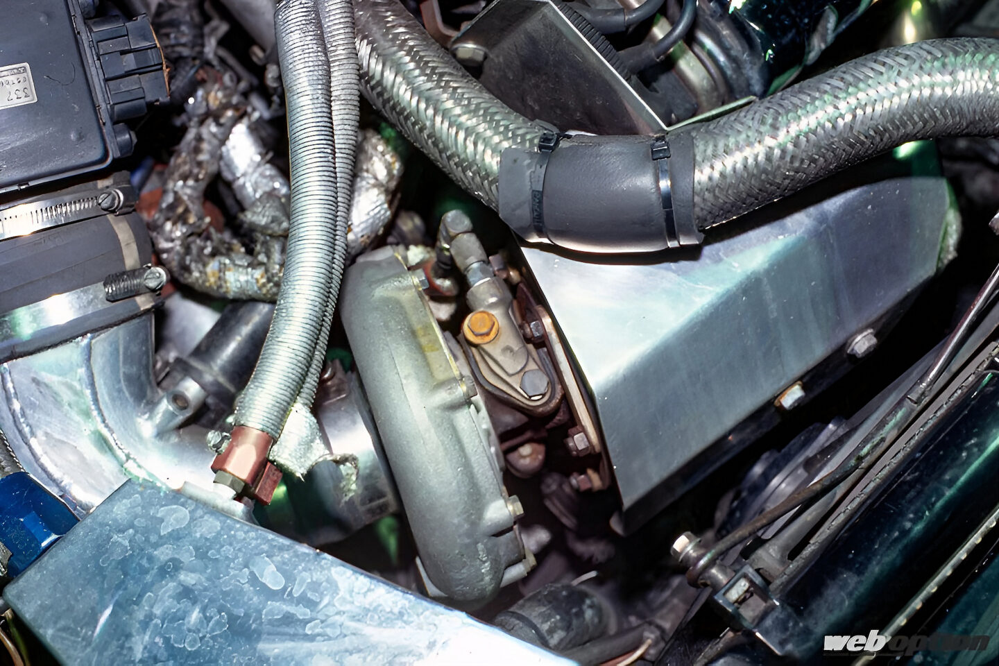 タービンはRHC6を組み込んだ300ps仕様からスタート。その後モアパワーを求めてK27、K27.2、K27MOJ、そしてついにレーシングタービン直系のK27−3476HHBに辿り着く。ブースト1.4キロで600ps仕様とのことだが、実用的なバランスを考えて常用はブースト圧1.2キロの500psに抑えて走っている。