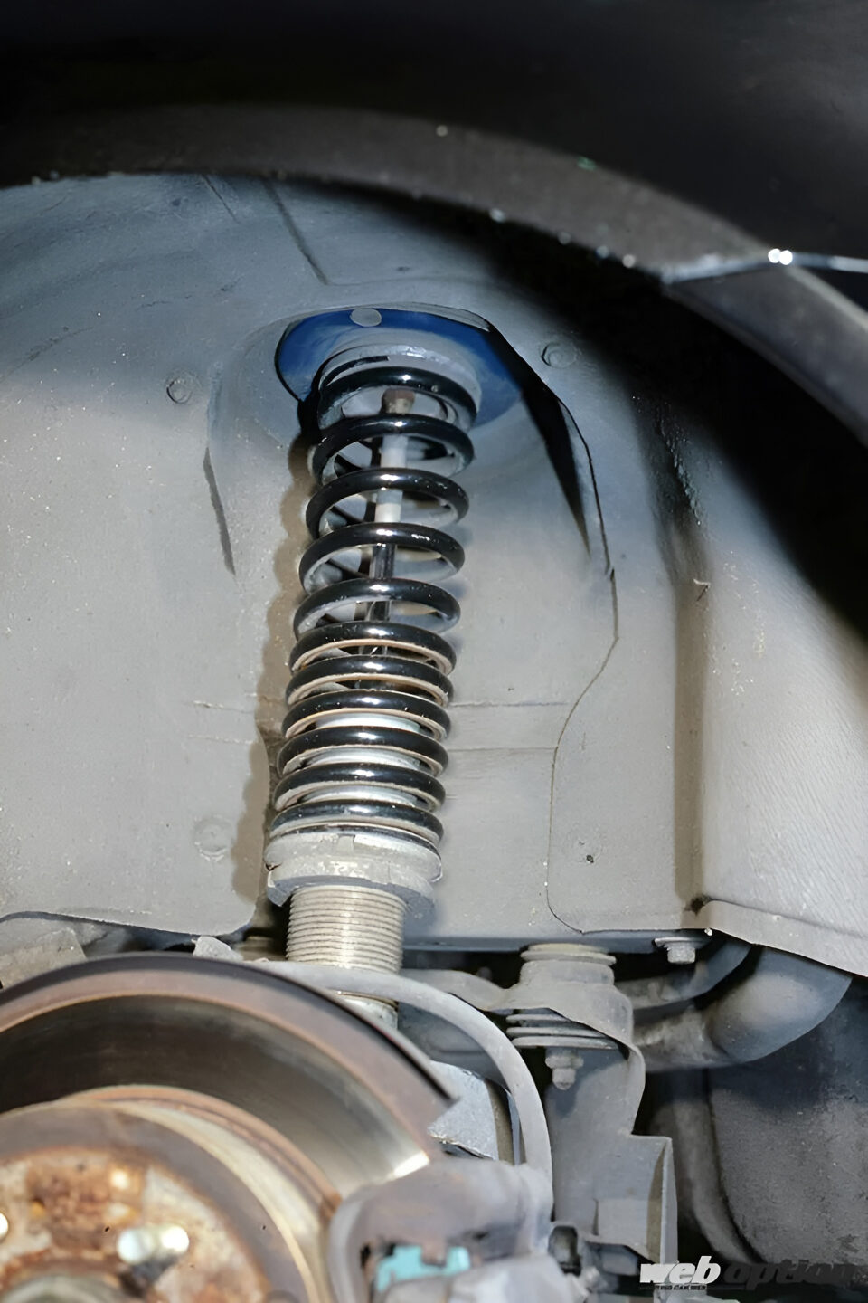 リヤはTRDのサスペンションを加工装着。タイヤは前後に235サイズのポテンザRE711を組んでいる。