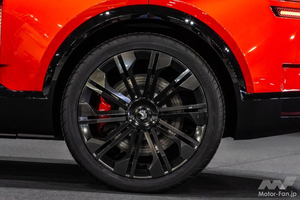 パワートレインに関する発表はないが、長いボンネットの左右にルーバーが配されていることから、V型多気筒エンジンと電動化の組み合わせもあると妄想したくなる。前車軸の後ろにあるブレーキキャリパーはタイロッドが前引きでることを示しており、パワートレイン縦置きレイアウトの定番配置だ。