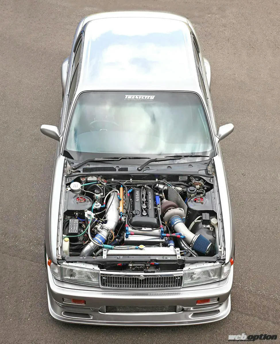 日産のクルーと言えば、主にタクシーや教習車として使われていた、いわゆる商用車の代表格。チューニングベースとはほど遠い存在のように感じられるが、じつはRB20系のエンジン(シングルカムモデル)を搭載しているだけに流用パーツも豊富で、ドリフトベースとして密かな人気モデルだったりする。