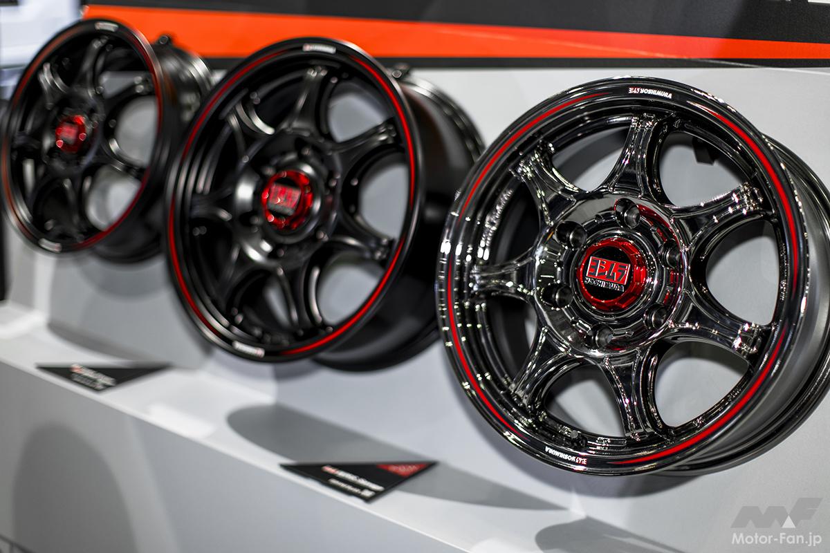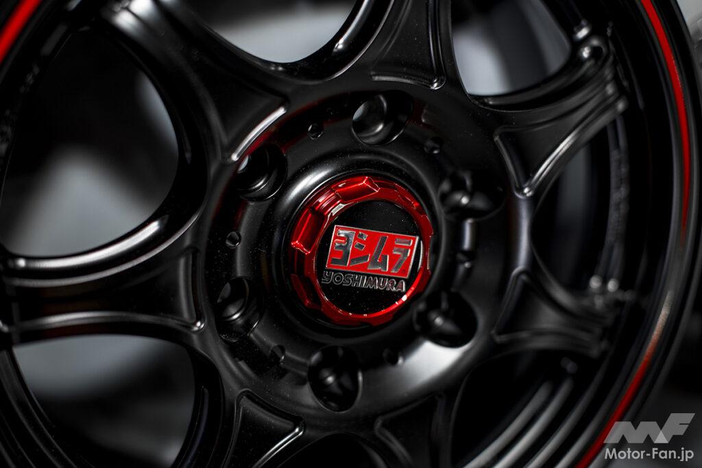 リム部分には“ヨシムラ YOSHIMURA”のロゴとレッドのヨシムラカラーを、センターキャップには“ヨシムラ”のロゴとレッドのヨシムラカラーをアレンジ。