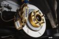 ブレーキは、キャリパー、ローター共にアルコン製。フロントは6ポットに355mm、リヤは4ポットに315mmという組み合わせだ。ワイドトレッドスペーサーは、トヨタ車用オフセットのホイールを装着するために作ったワンオフ品でフロントが25mm、リヤが35mmだ。