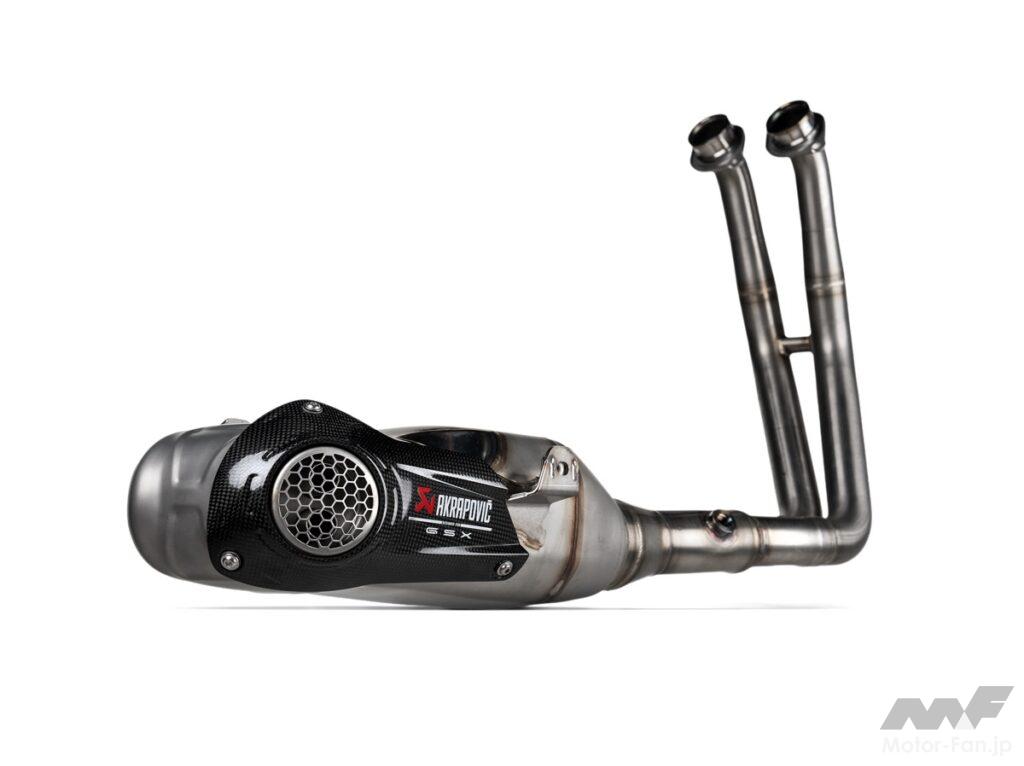EVO専用装備として、アクラポヴィッチ製スポーツマフラーが標準装着され、官能的なエキゾーストサウンドを奏でるとともに、軽量化にも寄与。さらに、モノポストカバーがレーシーなリアビューを演出し、タンクパッドには専用グラフィックを採用している。