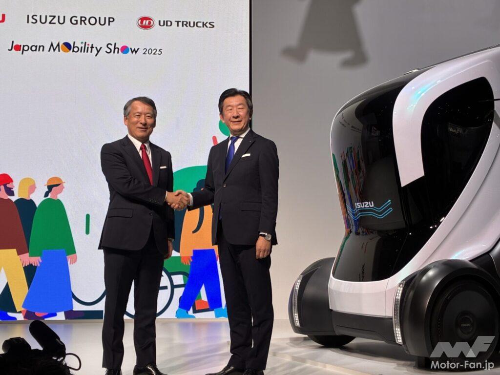 2025年10月29日、「ジャパンモビリティショー2025」のプレスデー、いすゞ自動車とUDトラックスから成るいすゞグループのブースにおいて、いすゞ自動車株式会社 代表取締役社長COOの南真介氏およびUDトラックス株式会社 代表取締役社長CEOの伊藤公一氏による、物流の危機と未来に向けた取り組みをテーマにした共同スピーチが行なわれた。