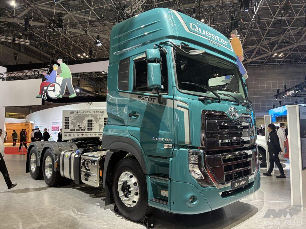 この会場で初公開となる、荷物の積み替えを不要にし、配送困難地域への対応や、貨物と人を同時に運ぶといった新しい輸送の形を提案する、縦型フレームを採用したいすゞのコンセプトトラック「VCCC(Vertical Core Cycle Concept)」や、約10年ぶりのエクステリア刷新となる大型トラックの新型「ギガ」、自動運転機能を搭載した「エルガEV」、そしてUDトラックスのユーロ6に対応した新興国向け大型トラック「Quester(クエスター)」、といった展示車両群は、いすゞグループによる様々な課題解決策の具現化と位置付けられていると言っていいだろう。