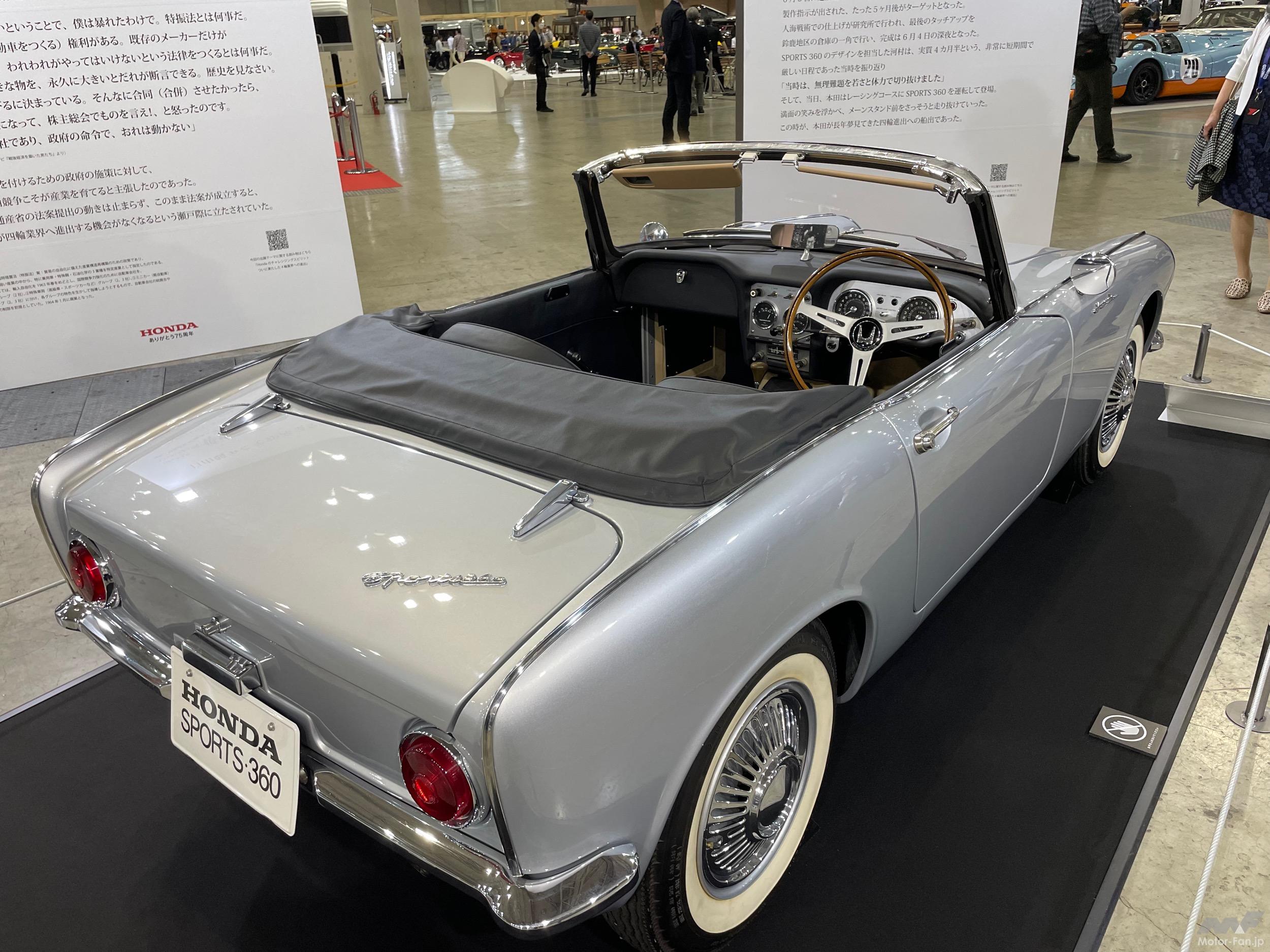 ホンダブースに展示されていた「ホンダ・SPORTS 360」 は、1962年の第9回全日本自動車ショーにおいて、ホンダ初の四輪車として公開されたモデル。こちらの車両のプロトタイプは現存せず、2013年に本田技術研究所で技術伝承を目的にイチから復刻版が製作されたというから驚きだ。