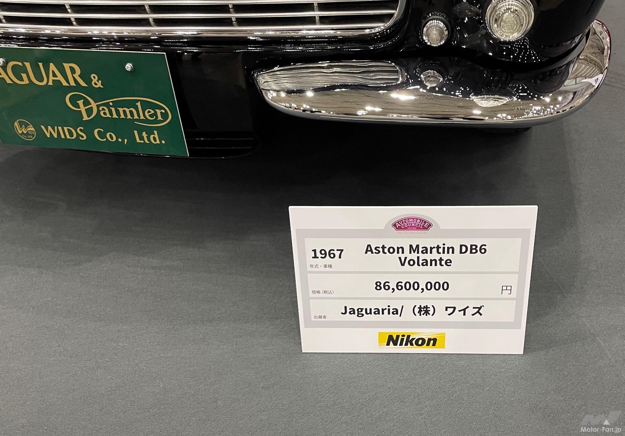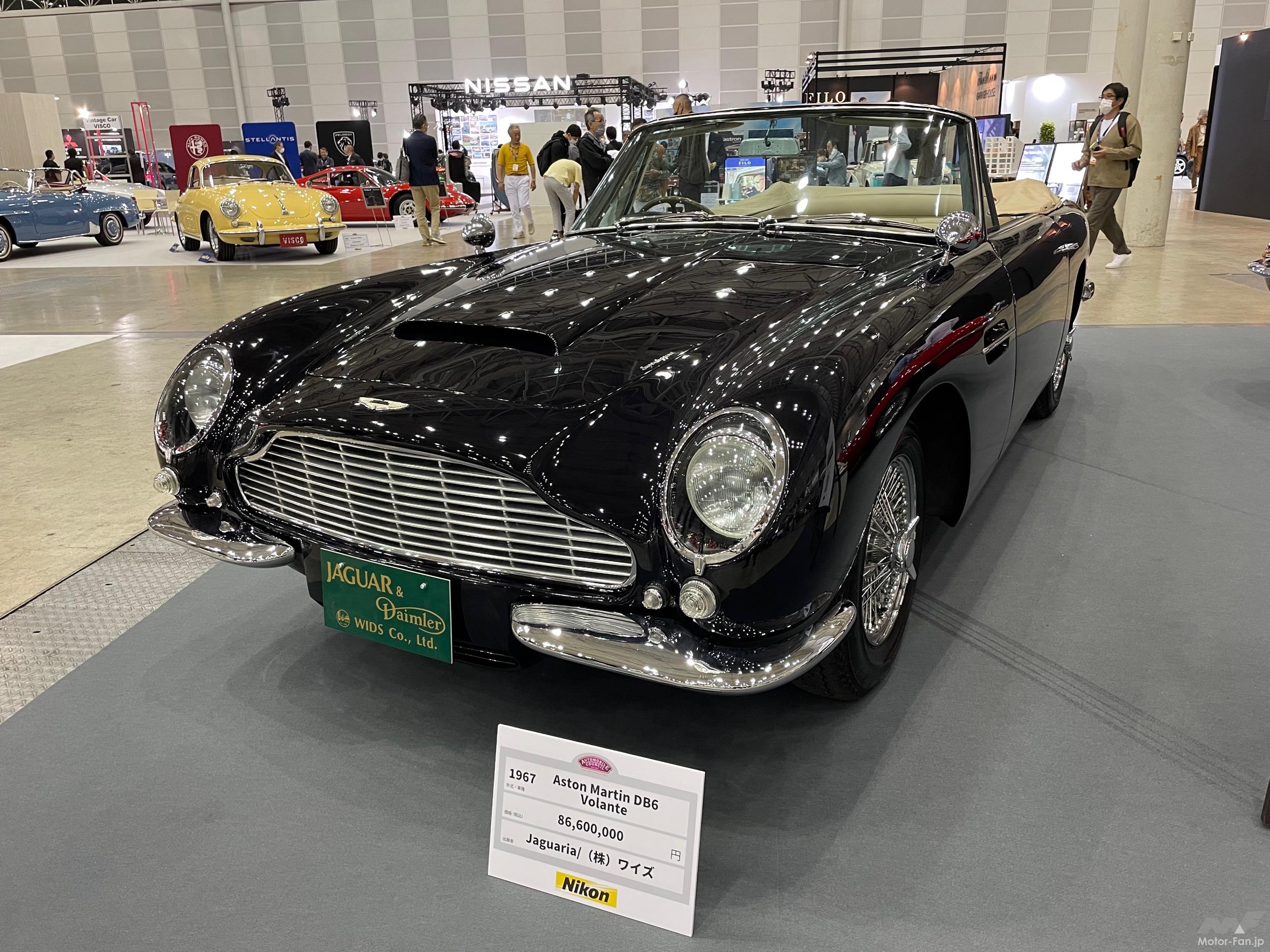 会場で一際高額な価格を付けていたのが、Jaguaria/ワイズが展示する、1967年式の「アストンマーティン・DB6ヴォランテ」だ。「DB6」は1965年〜1970年にかけて生産され、「DB5」の後継モデルとなる。展示されていた「ヴォランテ」は1966年の「ロンドン・モーターショー」で発表された4人乗りのドロップヘッド・クーペ(コンバーチブル)となっている。エンジンは3.6L直列6気筒DOHCを搭載し最高出力282psを発生させた。こちらの車両の価格は、なんと8660万円で販売されていた。