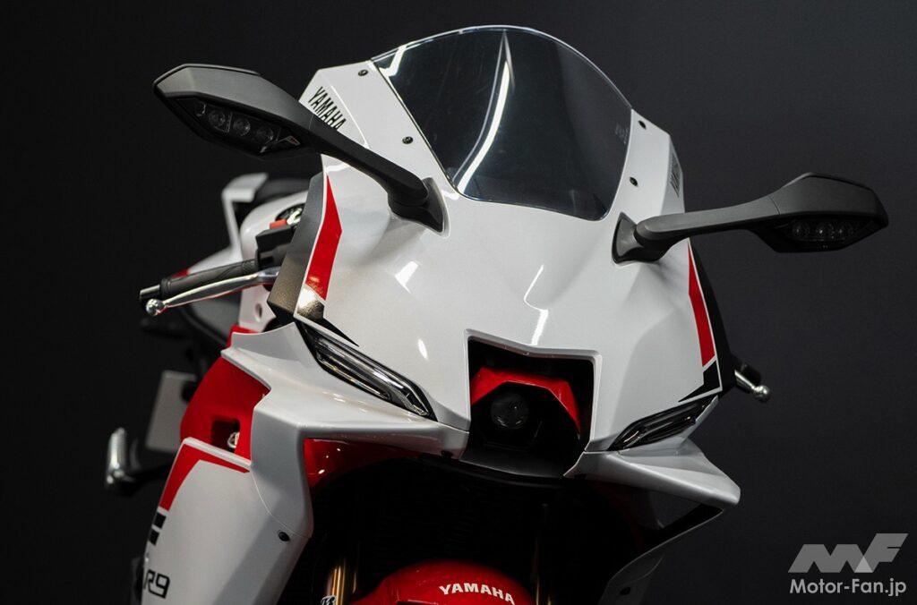 デザインは“YZF-R”の象徴であるM字ダクトと二眼ポジションランプを継承しつつ、水平基調のサイドビュー「ホリゾンタル・ムーブメント」で安定感と躍動感を両立。ウイングレットを組み込むことで新世代のスポーティさを演出した。