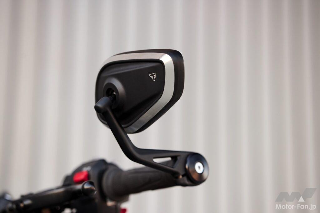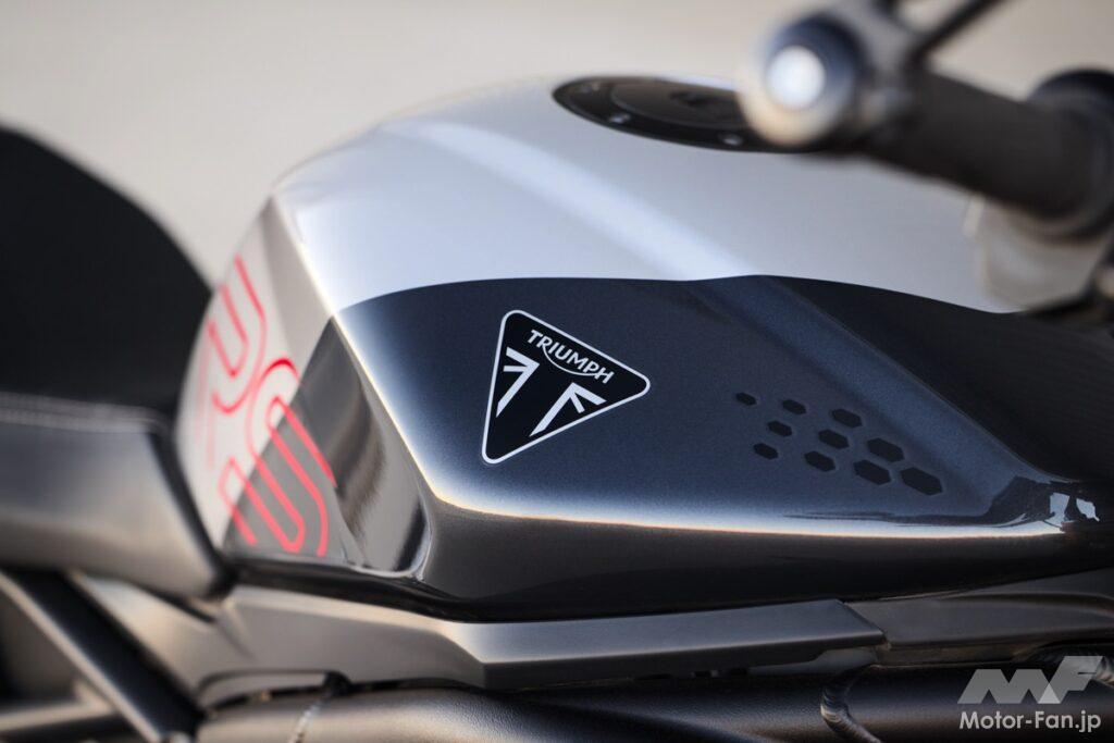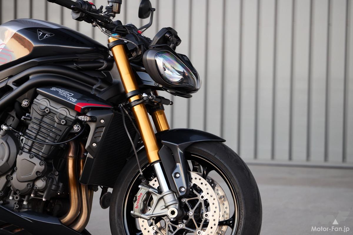 「スピードトリプル1200RS」には、トライアンフのMoto2™エンジン開発で得られたノウハウが取り入れられている。よりパワフルで耐久性に優れ、コンパクトな設計が可能となったとともに、30年にわたるスピードトリプルのデザインDNAを受け継ぎ、特徴的なツインヘッドライトと片側スイングアームを引き続き採用した。