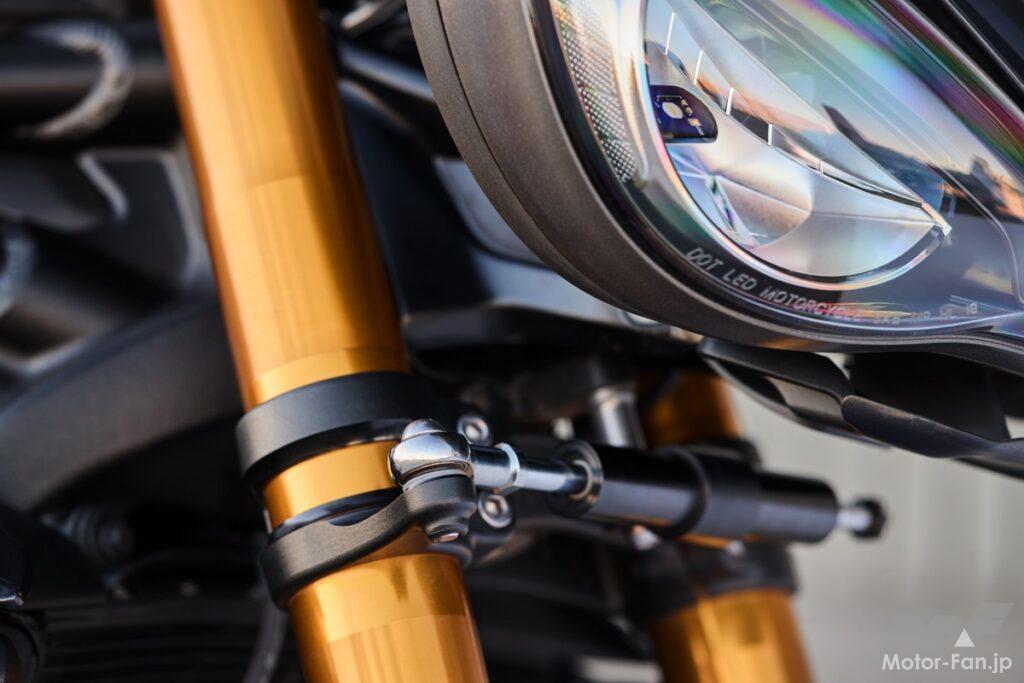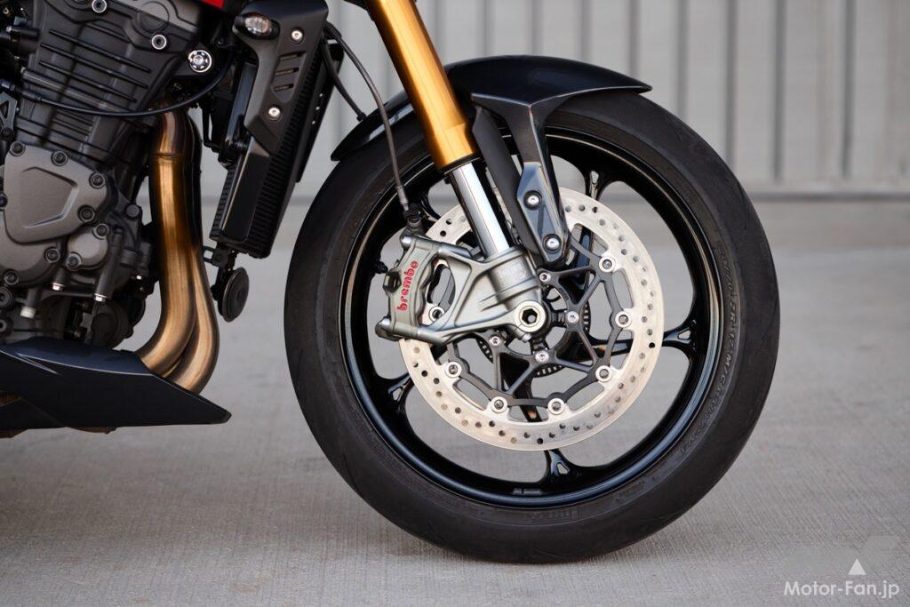 クランクシャフトのバランス見直しにより、エンジン性能が向上した1160cc直列3気筒DOHCエンジンは、最高出力183PS/10,750rpm・最大トルク128Nm/8,750rpmを発揮。