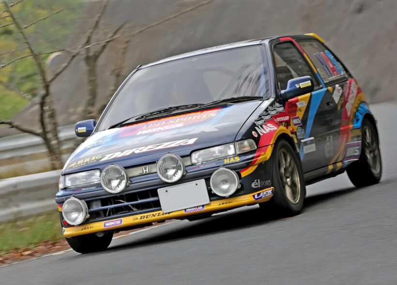 装着されているelシュポルト車高調はターマック仕様で、グラベル走行時は別仕様へ交換される。どちらも愛知県にあるラックによるスペシャルだ。また、フロントブレーキはEK3シビック用キャリパーとGA4キャパ用ローター流用によって強化済みだ。