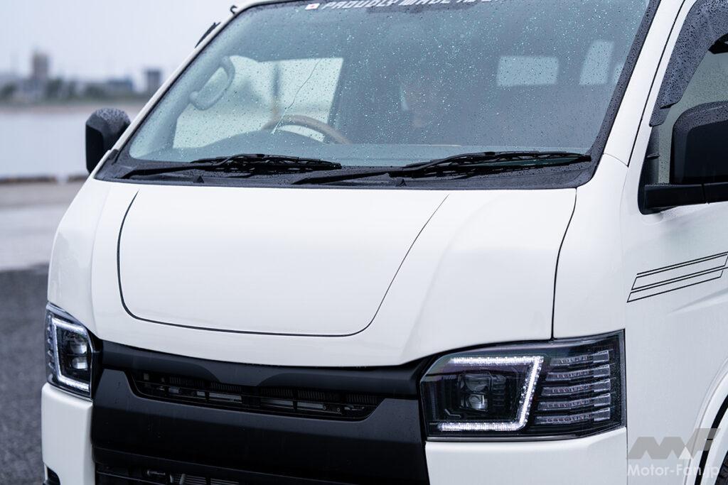 IFUUではハイエースのナロー&ワイドをベースにしてユーザーのライフスタイルにマッチした様々なスタイルのカスタムモデル(ワゴンやキャンピングカー)を製作/販売している。このハイエースはナローハイルーフにREVOシートを2脚配置した1ナンバー8人乗り仕様。ただしベースになっているのはオーソドックスなDXじゃない。仕事最優先のDXだと内装が簡素で鉄板ムキ出しの安っぽい木目調内張りになってしまう。そこで目を付けたのが福祉車両のナローハイルーフ。内装もしっかりと手が加えられておりリノベーションカスタムでワゴン同様のゆったりとくつろげる車内に仕上がっている。