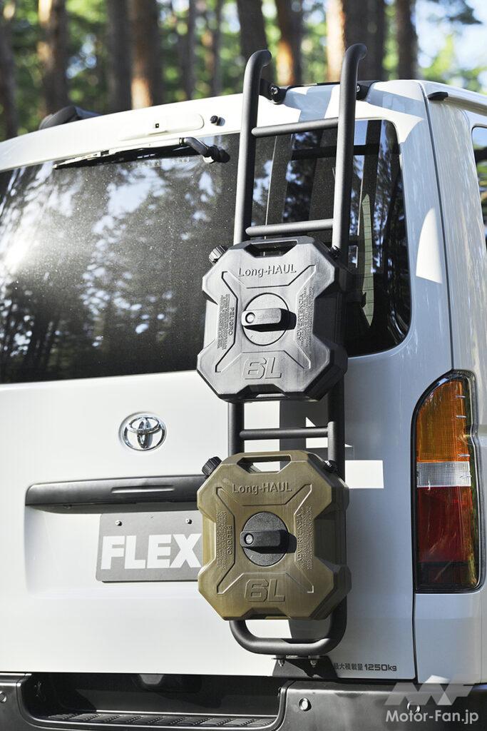 各地にハイエース専門店を展開するフレックスでは、キャンピングカーシリーズのモビーディックとは別に、いろいろな内装カスタムモデルをラインアップ。今回ピックアップするのは、ナローボディのバンDXをベースにした「WoodRim(ウッドリム)」だ。