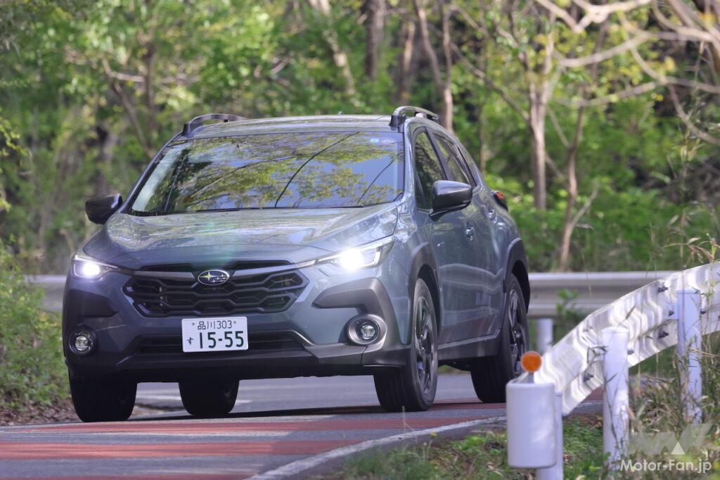 FWDの設定が新型クロストレックの魅力を引き上げているのは事実だが、機能はAWDのほうが明らかに上で、乗り比べればドライの舗装路でも違いは歴然としている。AWDのほうが直進時も旋回時も安定しており、走りの信頼感は高い。ぶれが少ないので安心感につながるし、長時間のドライブでは疲労度にも影響を与えるはず。クロストレックとの付き合いのなかでこうしたメリットを捨ててもいいのであればFWDを選択する、というスタンスで臨みたい。