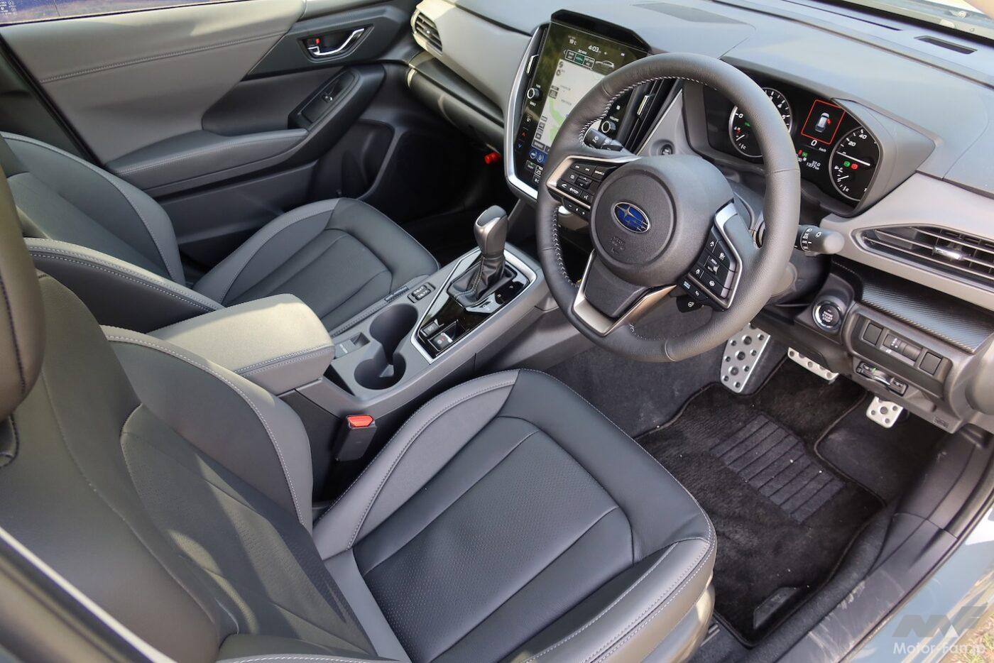 公道で試乗したのは、まさに売れ線のLimitedかつAWDで、ボディカラーは人気色のオフショアブルー・メタリックだった。深みのあるグレーがかった青は近年の流行り色で、個人的にも好みである。クロストレックには無彩色から鮮やかな色まで9種類の設定があるが、自分で選ぶとしてもオフショアブルー・メタリックにしただろう。割り当てられた試乗車はまさに「欲しい仕様」で、ドライブに向けて気分が上がった。
