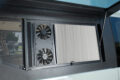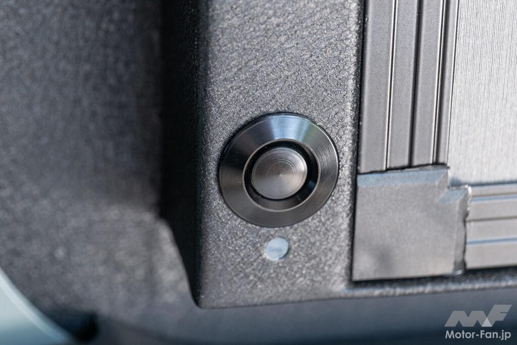 ウインドウの開閉は通常固定バンドで約20㎝、セーフティフックで止める場合は約15㎝と広々。窓を開く際もボタンをプッシュするだけとラクラクで、面倒な作業が不要な点も魅力的だ。