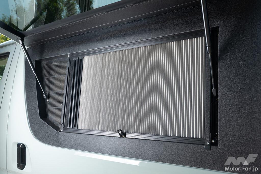 網戸とシェード、全開放と開閉のバリエーションも豊富なため、シーンや気分に合わせた使用が可能な点もメリット。純正プライバシーガラス近似色で、閉めている状態なら後付け感もほぼゼロ。純正ウインドウ時と見た目が変わらないのも特徴だ。