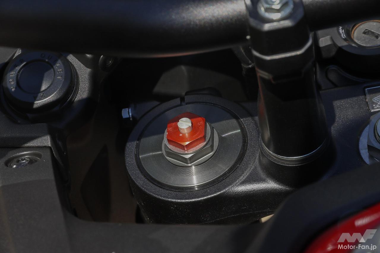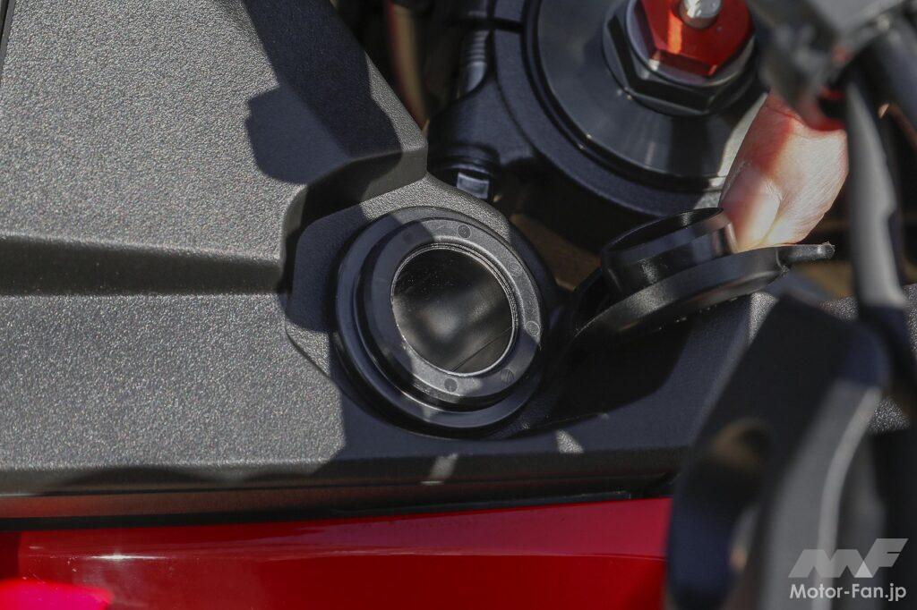 低中速重視の水冷SOHC4バルブ並列2気筒を始動させると、右に取り回されたマフラーからは静かなサウンドが奏でられます。温室にも耳障りなところがないので、これなら長時間走行でも疲労を誘発しないでしょう。