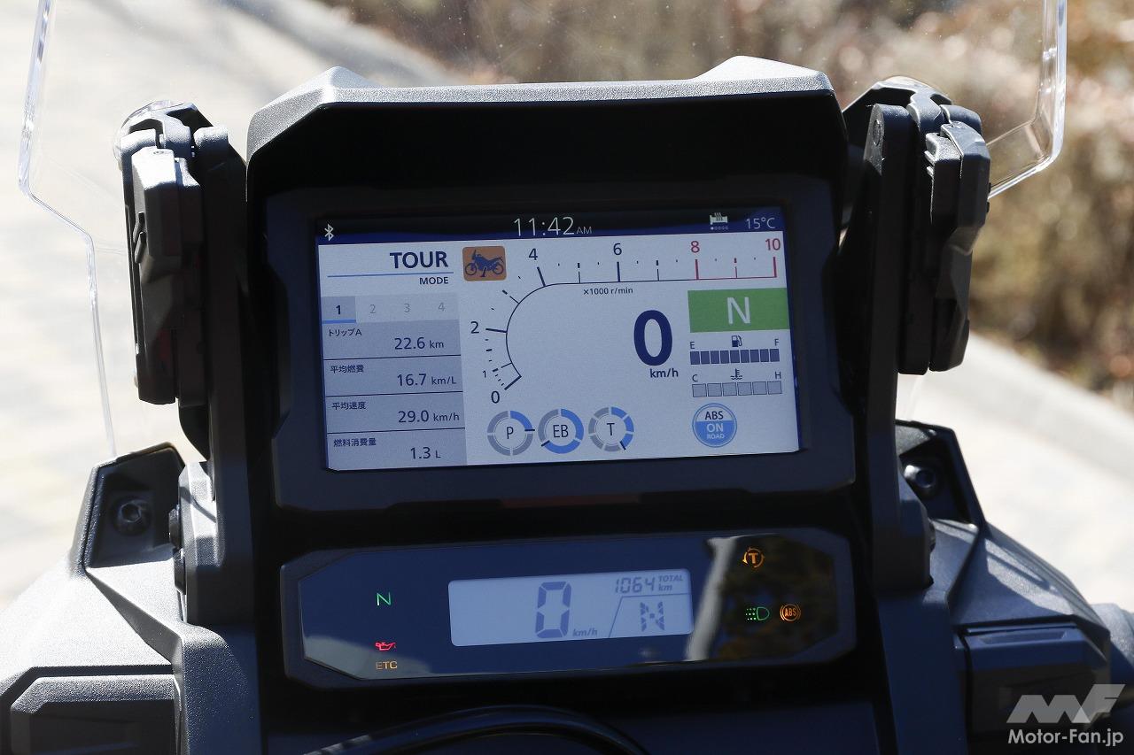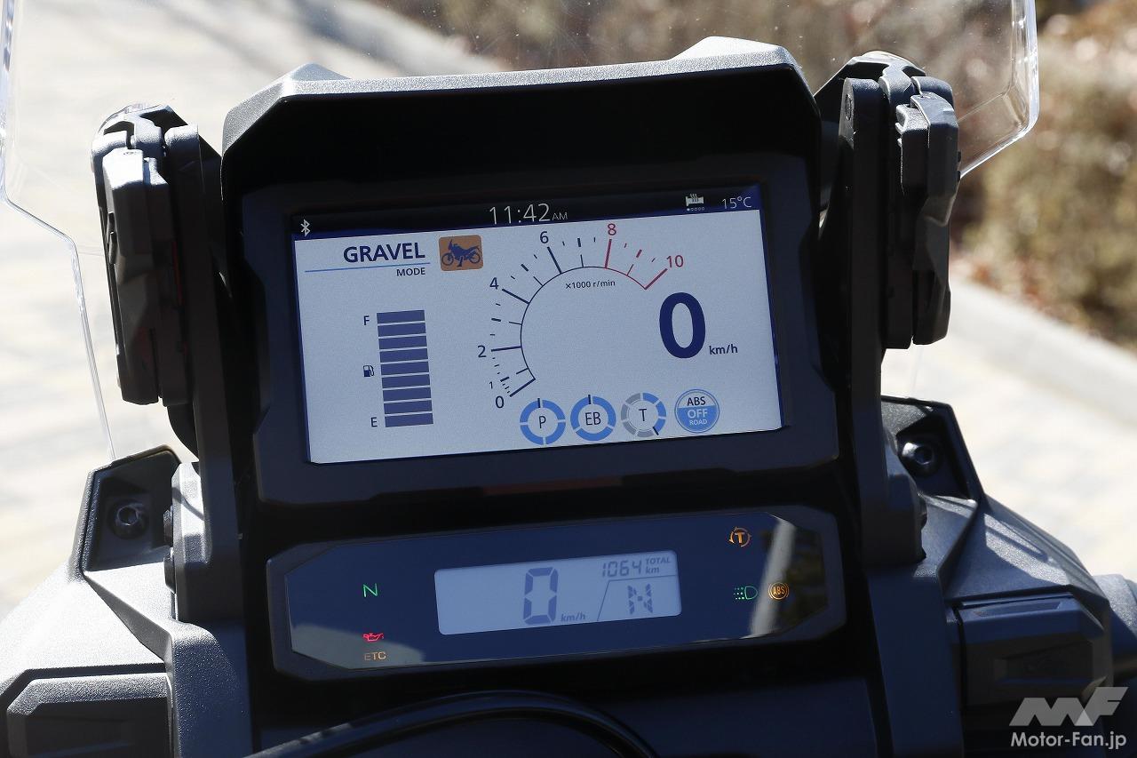 ツアーモードはあらゆる状況に対応してくれることは体感したので、次はアーバンモードに切り替えてみました。全体に穏やかなパワーフィーリングにはなりますが、全域でトルク不足を感じることはありません。そのため通常走行ならアーバンモードでも十分に対応してくれます。またABSやトラクションコントロールの設定から、雨天時や寒冷時にもアーバンモードがベストな選択となると思います。ほかにグラベルとオフロードモードがあるのですが、今回はダート走行しなかったので使用しませんでした。またライダーが任意に設定できるモードも2つあるのですが、こちらも使用しませんでした。任意のモードはユーザー自身の使用状況や好みで設定することになります。