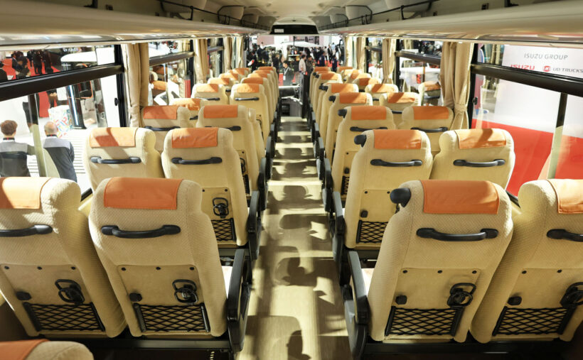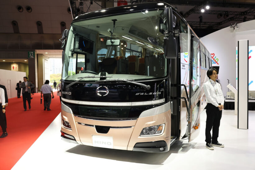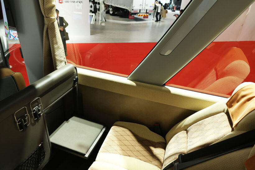 モーターショー 大型観光バス「セレガ」が大幅改良スタンバイ! 偏向報道でお見せします! 新型セレガと現行セレガ、変わったのはさあどこだ? 【ジャパンモビリティショー2025】【写真・45枚目】 大幅改良版「セレガ」。2026年春頃の発売を予定している。 新型セレガフロントビュー。 現行型セレガ。 サイドからやってきたJラインのフロント部が変わった。 可変配光型LEDになったフロントランプ。 バンパー下角に新設されたコーナーリングランプ。 現行セレガのフロントフェイス。どこが変わったか、わかるかな? 新型のリヤ。 現行セレガリヤの拡大写真。 現行セレガリヤ全景。 後面が左右にラウンドしていた現行に対し、新型は上辺と左右辺をフィン形状化した。 いっぽう、リヤ下半身のパネルは不変だ。 新型は併せてリヤランプをLED化した。 ラウンディッシュエントランス。 運転席全景。 ぐるりと取り囲まれたスタイル。 トヨタ車で見かけたような気がするハンドル。 ハンドル左のスイッチ群。 ハンドル右のスイッチ群。 運転席右サイド、上面のスイッチ群。すげえ数だ! 右サイド壁面のスイッチ群。 ルーフにあるエアコンユニット。 シフトダイヤル。 いっけん、ただのもの入れに見えるがそうではないはずだ・・・ 実は・・・ 手前に開いて、シートをリクライニングさせると、ドライバー用の休憩席になる。 「はーやくみんな戻ってこないかなー。」 ガイド席専用席。 格納状態。うまい設計だ! ちゃんと3点式のELRシートベルトが備わっている。 ガイド席マイクジャック。 前席から見たキャビン全景。 後席から見たキャビン全景。 乗客シート。 栓抜きや灰皿があった頃が懐かしい。 客室から見たJライン。 各席頭上に設けられた空調吹出口と読書灯。 キャビン前後にすらりと伸びる間接照明。 頭上の荷物棚(左側)。 頭上の荷物棚(右側)。 格納状態の展示だったのでお見せできないが、これが乗客が映画などを見るためのモニター。 オーディオユニットはラウンディッシュエントランス部に。 たぶん乗務員が使うもの入れ。 クローズ状態。 この画像の記事を読む