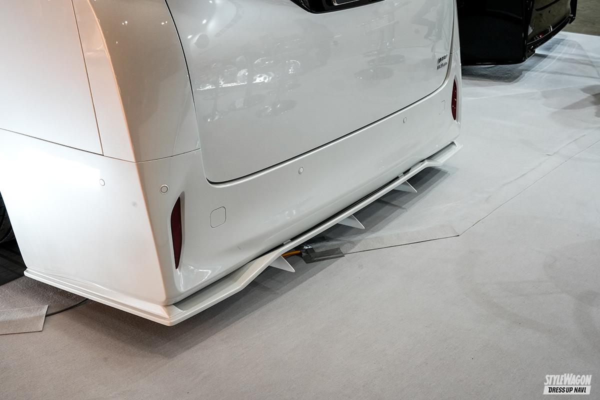 日本屈指のカスタムペインター「ローハン・イザワアートデザイン」のエアロパーツブランド「130デザイン」から40ヴェルファイア用エアロが満を期してデビュー‼︎ フロント・サイド・リア3点で構成される“ディフューザーパーツ”はボディとの取り付け部に張り出し感を与えたフラップタイプの外巻きデザインがこだわり。同時に自社オリジナルの専用フォージドホイールもリリースし、カスタムペイントやエアロとの統一感をも視野に入れたトータルコーディネートへの本気度の高さを垣間見ることができるのだ。
