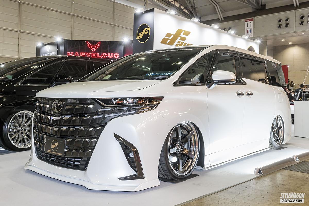 車種専用のエアサスキットを展開している「エアフォースジャパン」。クール・クルーズのエアロをセットアップしたアルファードには、ハイエンドモデルとなるダイヤモンドキットを装着。ブースでは上げ下げのデモンストレーションも行い、ギャラリーの注目を集めていた。このダイヤモンドキットはリザーブタンク付きダンパーを採用。より良い乗り味を実現するおすすめのシステムだ。さらに軽キャンピングカーやハイエース、ハイラックスなど、リア荷重が大きいクルマの乗り心地をよくできるサポートアイテムとして「エアサポ」というキットを新展開。サスペンションを交換するのではなく、エアバッグを追加して底付きなどを解消できるシステムだ。エアバッグキットの価格は15万円〜で、コンプレッサー&メーターなどのシステムが9万7900円。こちらも要注目!