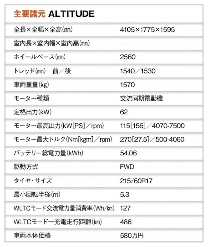 日本市場には2024年9月にお目見えした。旧グループPSA由来の〝eCMP〞をベースとしたモデルで、昨年前後して登場したフィアット600eと成り立ちを同じくし、ともに駆動方式は前輪駆動を採用する。搭載するモーターは定格出力62.0kWで最高出力は115kW、最大トルクは270Nmというもの。BEVに乗るにあたり目安となる一充電走行距離のカタログ値は486㎞(WLTCモード)だ。