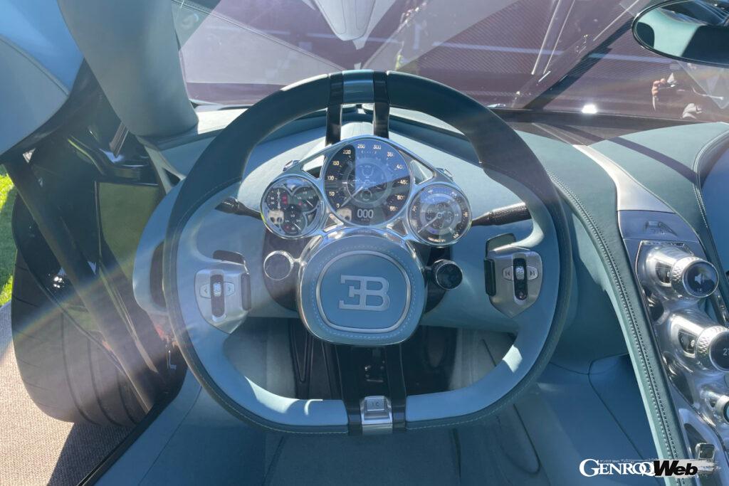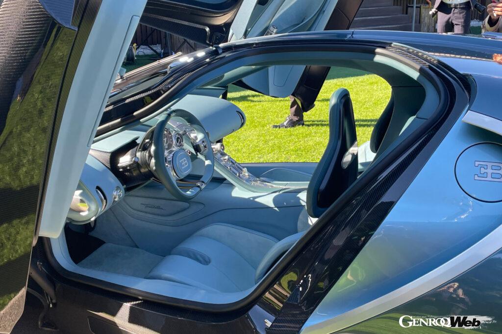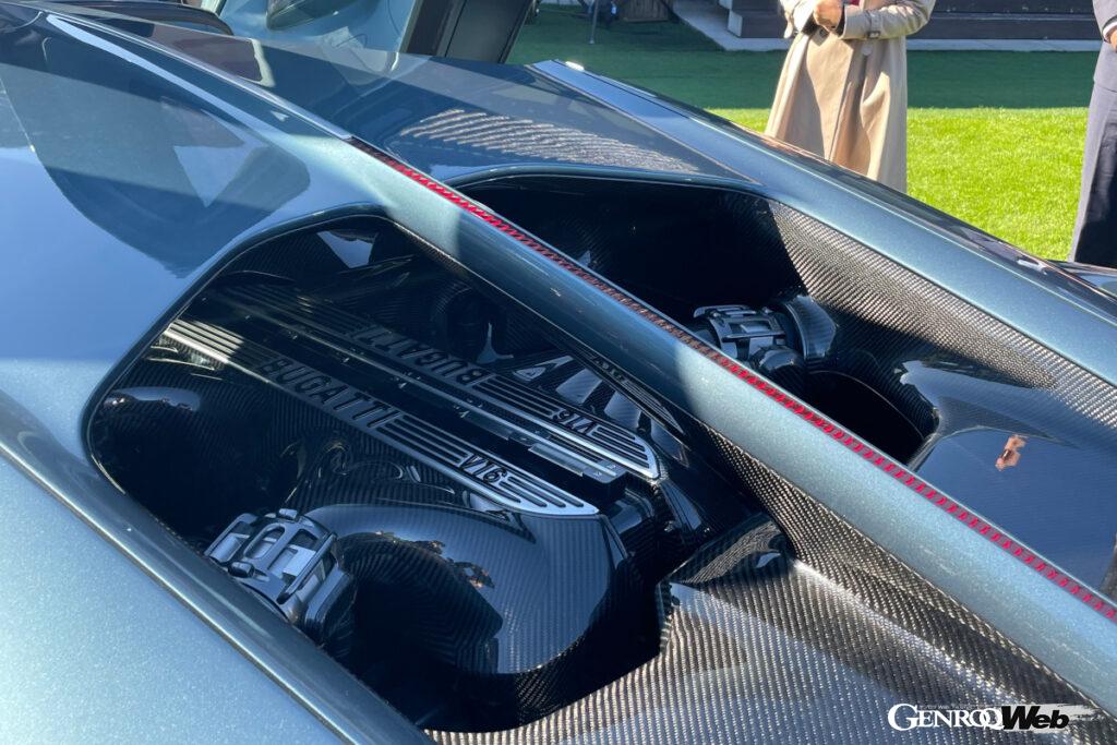 今回日本で展示されたのは、残念ながら実車ではなくモックアップだが、その第一印象は非常にコンパクト。シロンが搭載していた、8.0リッターW16クワッドターボエンジンに代わり、リヤミッドに縦置きで搭載される8.3リッターV16自然吸気エンジンは、単体重量わずか252kgを謳っており、その排気量を感じさせないスリムなサイズ感だった。