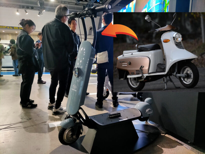 写真は国内自動車メーカーのスバルが製作した、プロトタイプ(試作)の特定小型原付「e-Rabbit concept(イー・ラビット・コンセプト)」。乗車シートのない立ち乗り型の電動キックボードタイプとなる同車は、スバルが前身の富士重工業時代に生産していた名車「ラビットスクーター」をモチーフに、自動車メーカーならではの本格的な機構が随所に導入されている。